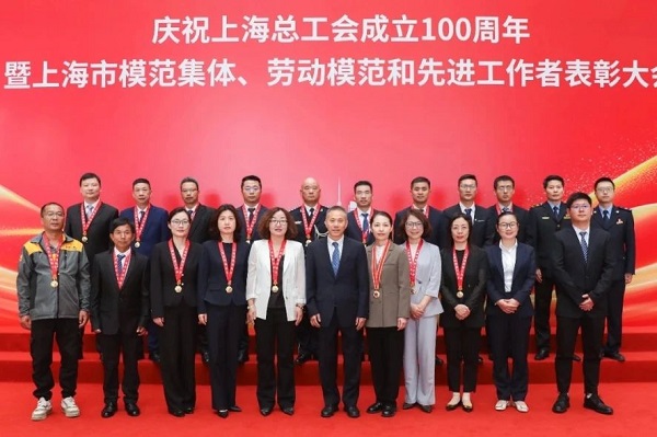 2025年5月9日下午,庆祝上海总工会成立100周年暨上海市模范集体、劳动模范和先进工作者表彰大会在世博中心红厅隆重举行。其中,上海市模范集体299个、上海市劳动模范430名、上海市先进工作者168名。我院检验科主任龚倩获评上海市先进工作者。