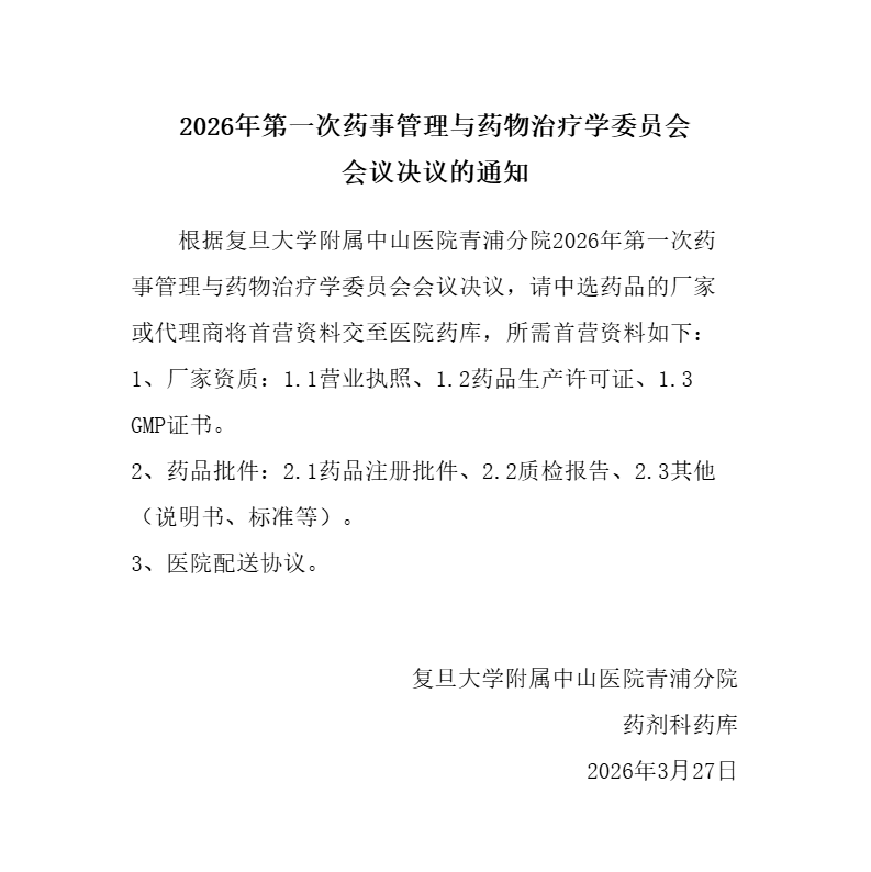 2026年第一次药事管理与药物治疗学委员会会议决议的通知